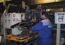 Svařovací automat na zavaření připojovacích armatur a distančních rozpěrek. Na tomto stroji se z univerzálních desek vytváří veškeré typy radiátorů - 10, 11, 20, 21, 22, 33. (obr. 7)