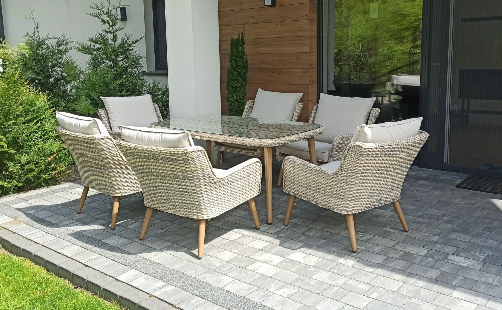 Moderní zahradní nábytek je navržen tak, aby zvládl i náročné podmínky – teplotní výkyvy, déšť, slunce i vlhkost. Technorattan, hliník i kvalitní plasty nevyžadují složitou údržbu.