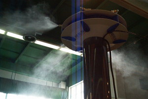 Pro zvlhčovací zařízení se používá výhradně filtrovaná studená, pitná voda, což zaručuje stále stejný hygienický standard. Pitná voda je pomocí změkčení zmekčena na 00 dH. Bezolejové vodní hydraulické čerpadlo přepraví pitnou vodu při tlaku přibližně 60 bar přes síť vysokotlakých vedení k rozprašovacím jednotkám. Řídící jednotka přesnými čidly zajistí požadovanou vlhkost v určeném prostoru.