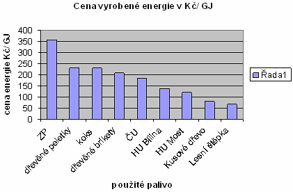 Cena tepla na výstupu z tepelného zdroje závisí nejenom na současné ceně daného paliva, ale i na použité hodnotě tepelné účinnosti zdroje. Proto byly pro porovnání uvedené v tabulce použity hodnoty minimální účinnosti výroby tepelné energie pro palivové kotle dle vyhlášky MPO č. 150/2000 Sb. Pro názornou ilustraci jsou ceny energie z paliv uvedených v tabulce seřazeny v grafu.