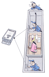 Poznámka správce části Výtahy: V České republice se tato zařízení běžně používají nejen při instalaci nových výtahů, ale i při provádění podstatných změn výtahů. Je ovšem velmi důležité, aby požadavky uvězněných osob v kleci nebo šachtě byly nasměrovány na správné místo - tím má být dispečink servisní firmy, kde mají být "živé" osoby po celých 24 hodin 365 dnů v roce. Většinou není nic platné, když je alarm poslán na mobilní telefon, který je mimo signál nebo vypnut.
