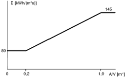 Sami cítíme, že tento graf je zjednodušený a aplikovatelný maximálně na rodinné domy či menší bytovky, a je otázkou, do jaké míry je opravdu pravdivý a jak vznikl. Zajisté "platí" pro jeden typ malých objektů se stejným procentem zasklení, stejnými okrajovými podmínkami atd. Někdy se dokonce setkáme s vodorovnou čárou 50 kWh/m2.rok pro všechny A/V s tím, že se jedná o nízkoenergetické stavby.