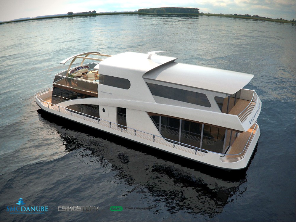 Prvním z ukázkových projektů je hausbót pro společnost Stroje a mechanizmy z Dunajskej Stredy.Tým pěti pracovníkůz SMC-Danube připravuje pro tento náročný projekt – a dost možná i nejluxusnější hausbót na Slovensku – jak projekční, tak i výrobní dokumentaci. Zadání je postupně rozvíjeno od roku 2009.V přípravě je aktuálně prototyp lodě, který by měl vyplout již v roce 2012.