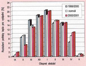 Obr.6 Rozložení potřeby tepla v otopném období 2000/2001