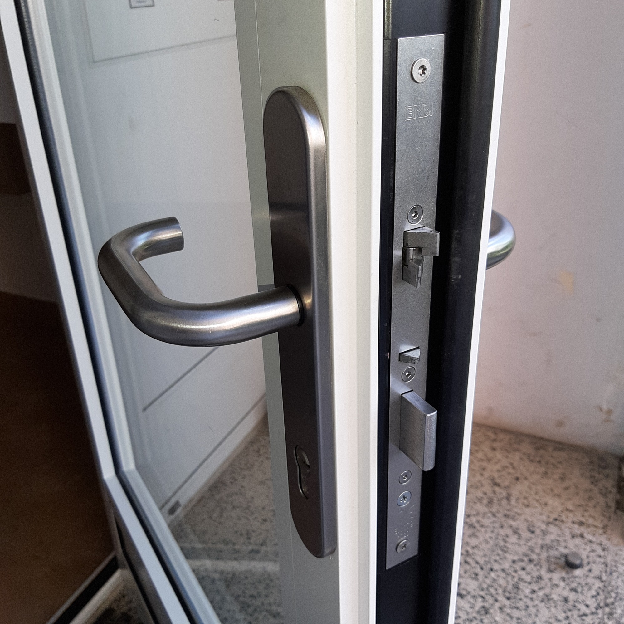 Dnes je možné vyřešit požadavek na bezpečnost majetku a bezpečnost osob bez větších problémů. Ideálním řešením pro vstupní dveře bytových domů je použití elektromechanického samozamykacího zámku. Jak je z názvu patrné, dochází u zámku po zavření dveří do zárubně k automatickému uzamčení – vysunutí závory a zpevnění střelky. Na dveřích je osazeno kování klika/klika. Zámek se z venkovní strany otevírá pomocí klíče, nebo pomocí zfunkčnění venkovní kliky elektrickým impulsem z čtečky čipů nebo karet. Ostatním návštěvníkům domu je možné otevřít dveře pomocí impulsu z domácího telefonu.