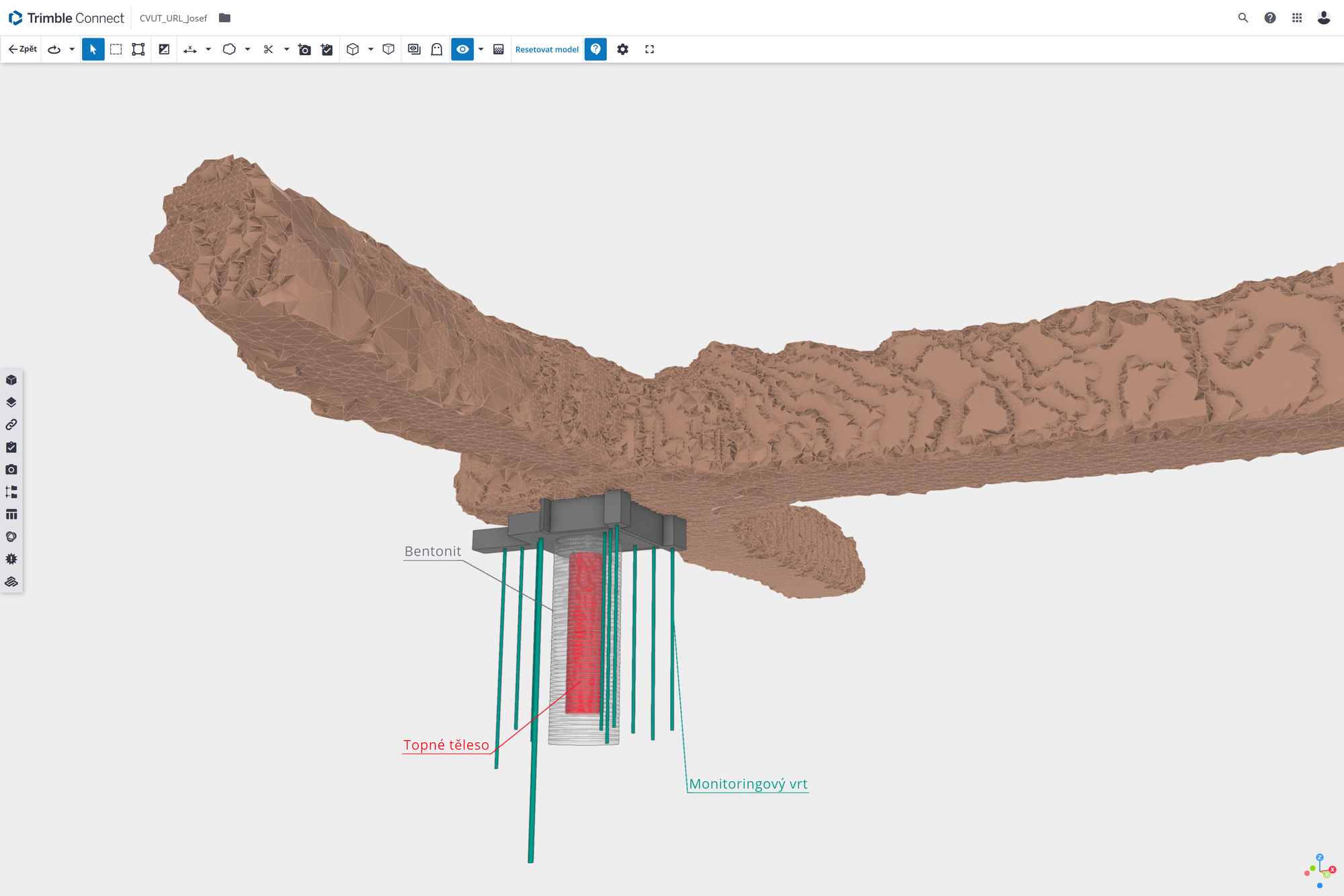 To je klíčové především při plánování těchto experimentů. K jejich provedení je potřeba využití těžké vrtné a stavební techniky. V BIM modelu lze dopředu provést analýzy přístupu a přesného umístění experimentu.