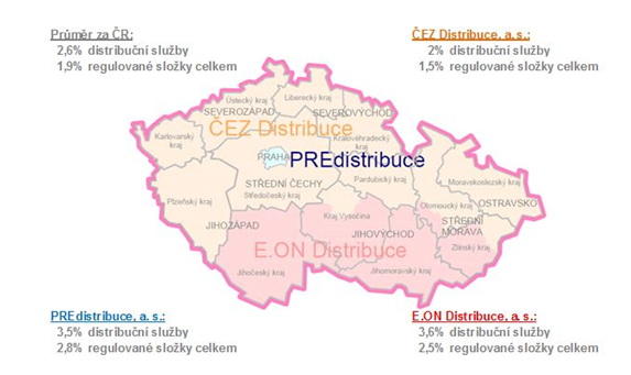 Platby za distribuci se zvyšují v průměru o 1,5%, zvyšuje se především platba za jistič, což opět znevýhodňuje zákazníky s menší spotřebou.