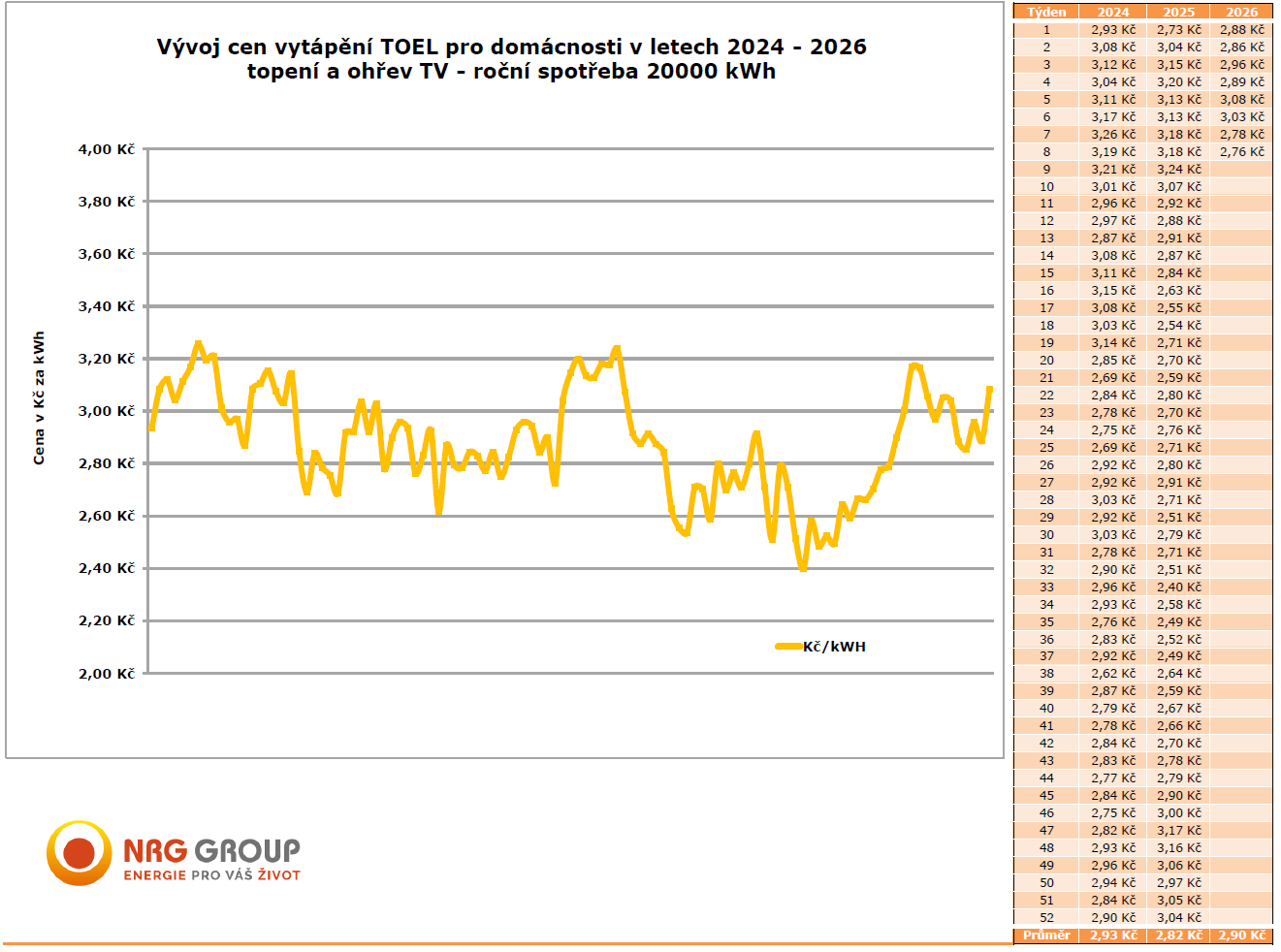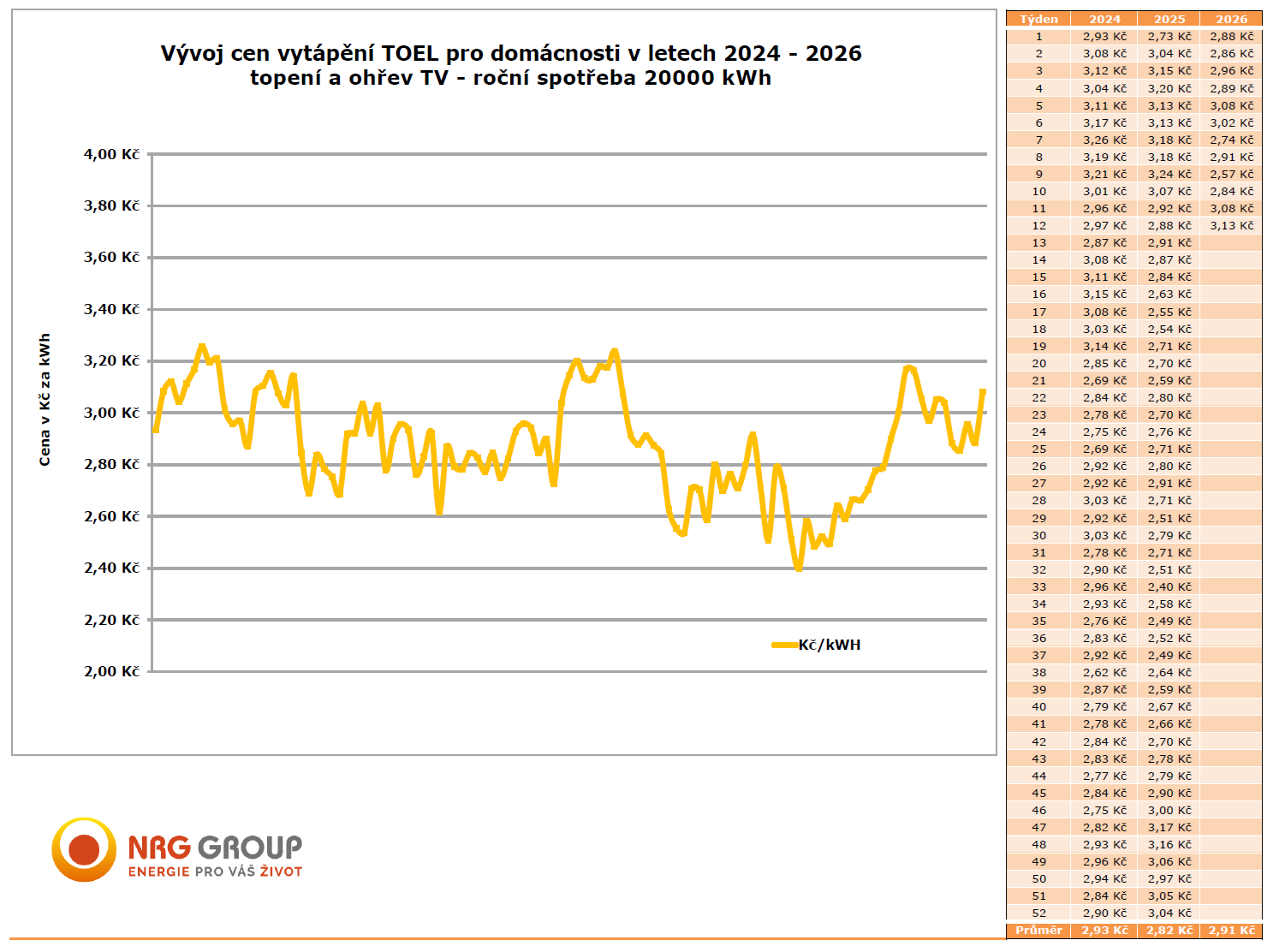 Ceny jsou redakcí aktualizovány každé úterý. Pro větší přehlednost a možnost srovnání s ostatními energiemi se uvádí konečná cena pro domácnosti s roční spotřebou 20.000 kWh, a to včetně DPH se započtením vratky spotřební daně.