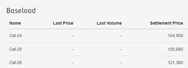 Tab. 3: Ceny elektřiny u měsíčních kontraktů pro dodávku po dobu 24 hodin za den (Base Load) (Zdroj: PXE)