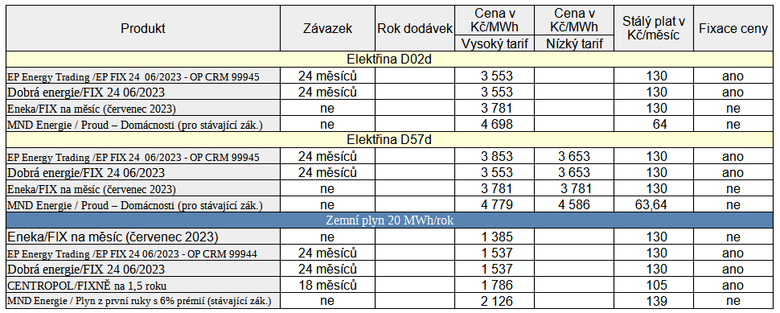 Tab. 2: Nejvýhodnější nabídky na trhu s elektřinou a plynem pro domácnosti, stav k 16. 6. 2023