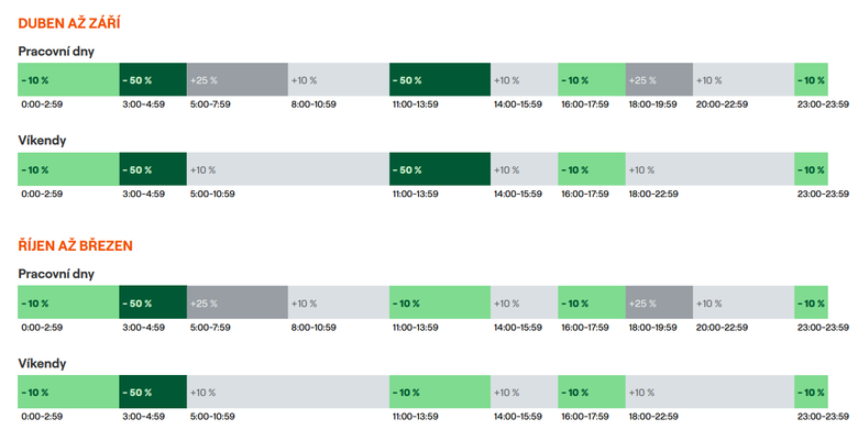 Přes poledne a v noci levněji