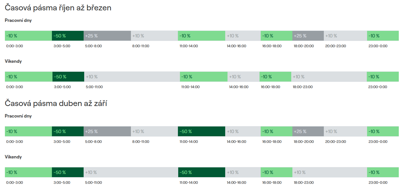 Přehled časových pásem pro určení ceny pro zákazníky (Zdroj: ČEZ Prodej)