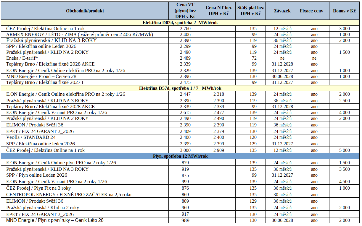 Sice tabulka nejvýhodnějších nabídek proti minulému týdnu nedoznala změn, ale přesto bych doporučil věnovat nabídkám dodavatelů pozornost a buď si vybrat pomocí zdejších doporučení výhodnější ceny energií, nebo alespoň se seznámit s cenami a chtít podobné ceny i u svých dodavatelů, když končí závazek a sjednává se prodloužení smlouvy.