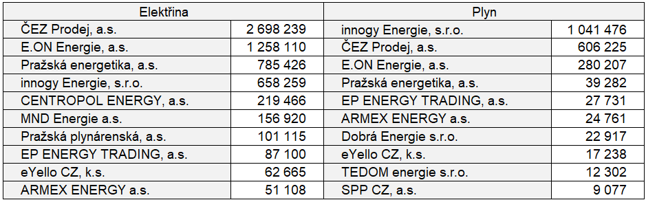 Více jak polovina dodavatelů elektřiny za uplynulých 12 měsíců zvýšila počet odběrných míst. Situace je jiná u plynu, kde pouze pouhá třetina dodavatelů zvýšila počet zákazníků. Nejvíce se dařilo většině velkých dodavatelů a také obchodníkům s jasnou a dlouhodobě výhodnou obchodní strategií.
