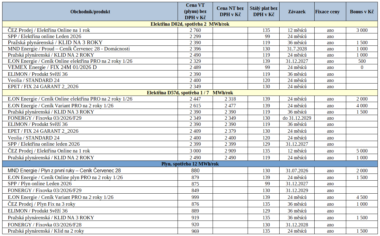 Ve srovnání nejvýhodnějších nabídek ke sjednání novými zákazníky došlo k několika škrtům, protože obchodníci nabídky přestali nabízet. I přes aktualizaci je nutné si konkrétní nabídku ještě s vybraným obchodníkem ověřit.