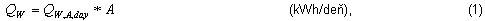 Qw, A, day = 10 kWh/(m2.rok) - špecifická potreba energie na ohrev teplej vody založená na definovanej teplote dodanej vody 60 °C a teplote prívodnej studenej vody 10 °C,