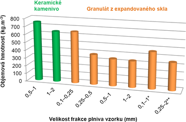 Pro dílčí experimenty byly po nezbytném počátečním odzkoušení několika možných surovin zvoleny dva silikátové materiály – keramické kamenivo a granulát z expandovaného skla. Oba tyto materiály mají podobné vlastnosti, především dobrou chemickou odolnost, výborné tepelněizolační vlastnosti, reakci na oheň třídy A1 (nejvyšší třída, v podstatě nehořlavý výrobek), tvarovou stálost při vyšších teplotách i dobré mechanické vlastnosti. Granulometrie byla volena v rámci možností podobná, u keramického kameniva byly použity frakce 0,5–1 a 1–2 mm, u granulátu pak nejprve tříděné frakce 0,1–0,25; 0,25–0,5; 0,5–1; 1–2 mm a následně byla vyrobena takéněkolikavrstvá tělesa tvořená kombinacívíce frakcí v rozsahu 0,1–1 a 0,25–2 mm v rámci tohoto druhu plniva.