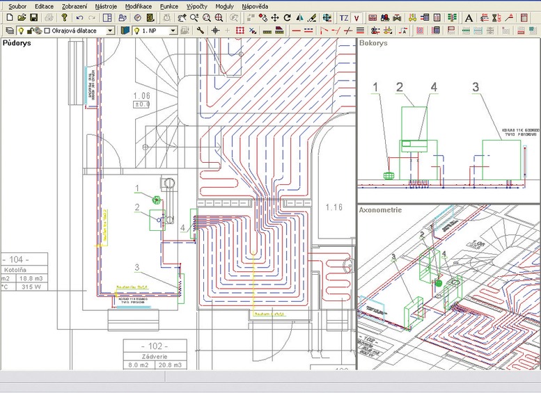 - vytápění / chlazení – dimenzování otopného systému a plošného vytápění a chlazení (podlaha-stěna-strop)
