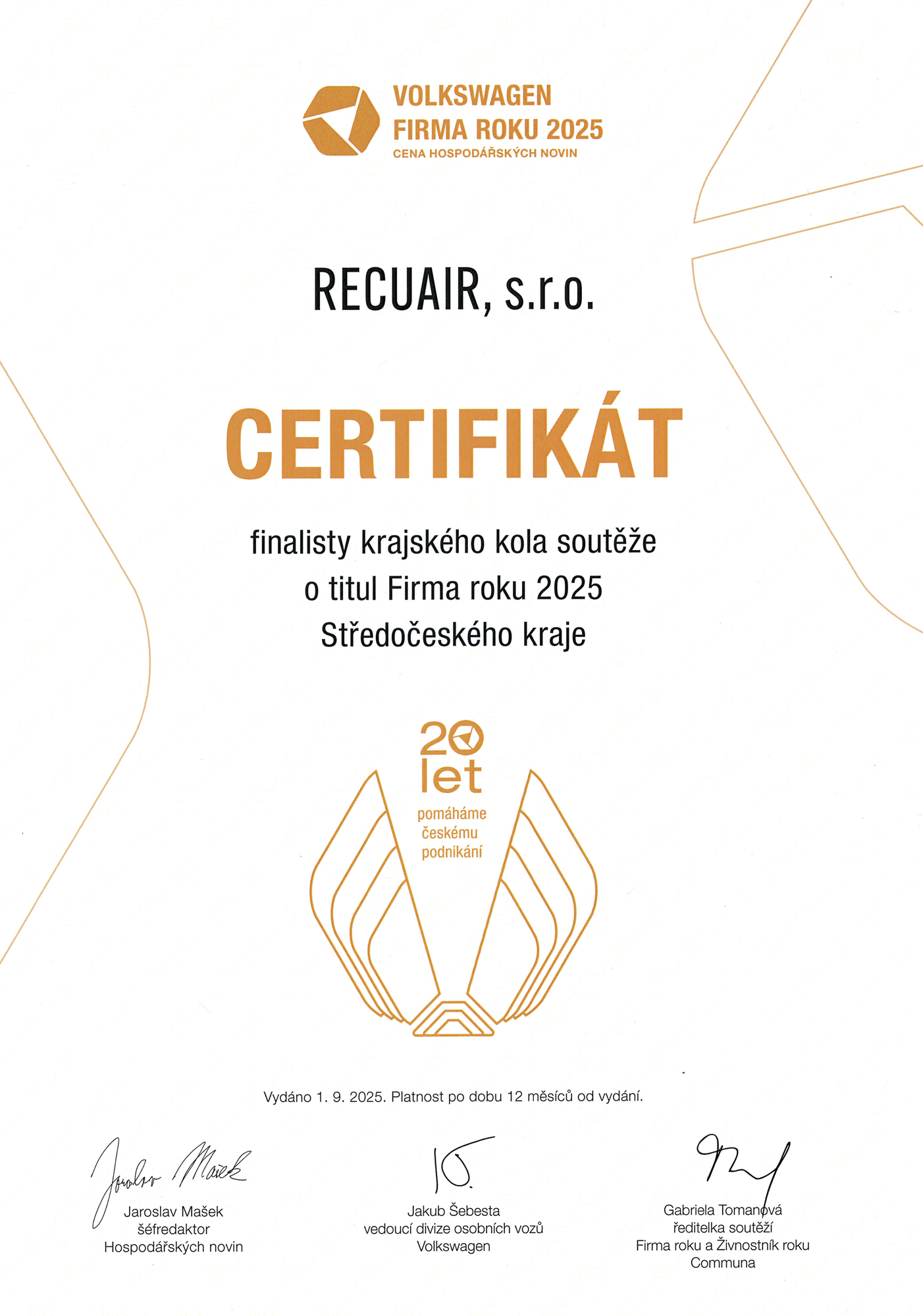 V roce 2025 dosáhl RECUAIR významných úspěchů: postup do finále soutěže Firma roku ve Středočeském kraji, instalace přes 2 000 jednotek a spolupráce s více než 50 partnery.