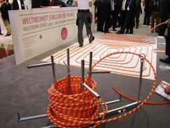Další zajímavou novinku ocení pro změnu montážníci dodavatelských firem. Kotvení trubek podlahového vytápění k podkladu se doposud řešilo pomocí mechanických sponek nebo využitím speciálně tvarovaných izolačních desek, do kterých se trubky vkládaly. Na veletrhu bylo představeno velice elegantní řešení na principu suchého zipu. Podlahové trubky mají na svém povrchu aplikovánu spirálu z materiálu, jež se „lepí“ na folii, kterou je opatřena vrchní strana podkladních izolačních desek. Spoj je na jednu stranu dostatečně pevný, aby při betonáži nedošlo k posunu trubek, na druhou stranu je rozebíratelný, takže montážníkovi umožňuje upravovat již položené trasy. Největší výhodou je ovšem neuvěřitelná rychlost pokládky oproti fixaci pomocí mechanických spojek, naprostá svoboda při volbě tras oproti kladení do profilovaných desek a daleko výhodnější pracovní pozice při pokládce. Montážník nemusí být při práci shrben či lézt po zemi po kolenou, ale klade trubky ve stoje, protože fixace probíhá jednoduchým přišlápnutím trubky k podkladu.