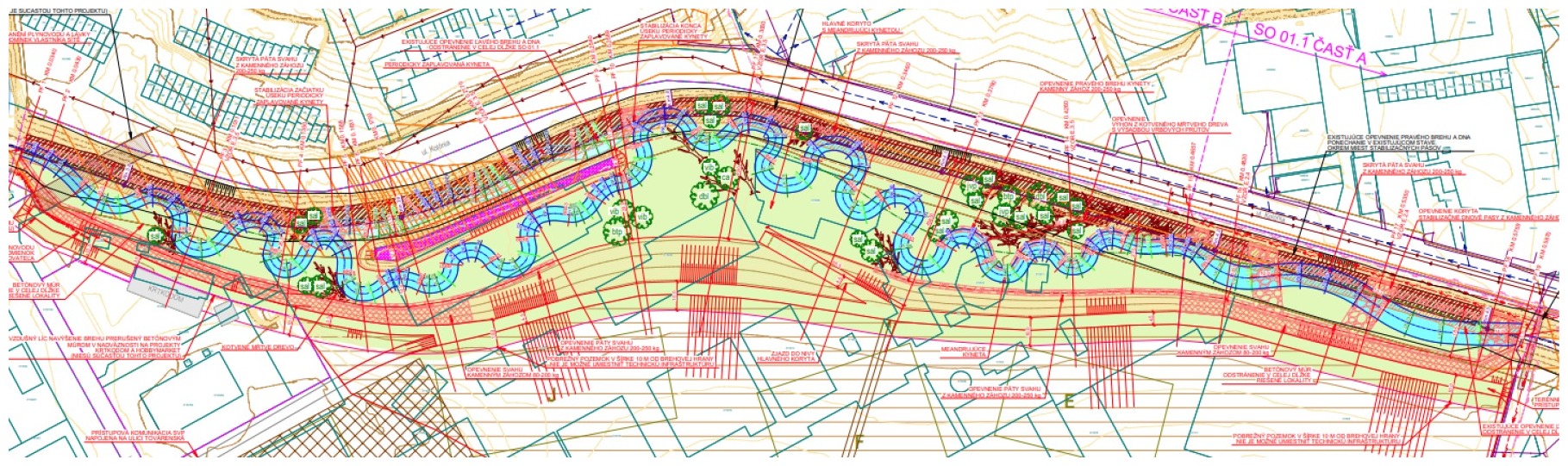 Návrh úpravy vodného toku Teplica v štúdii „Návrh úpravy a revitalizácie koryta a brehu Teplice v Senici (február 2022) (vypracovaný firmami DHI SLOVAKIA, s.r.o. a ALCEDO RIVER CLINIC s.r.o.)