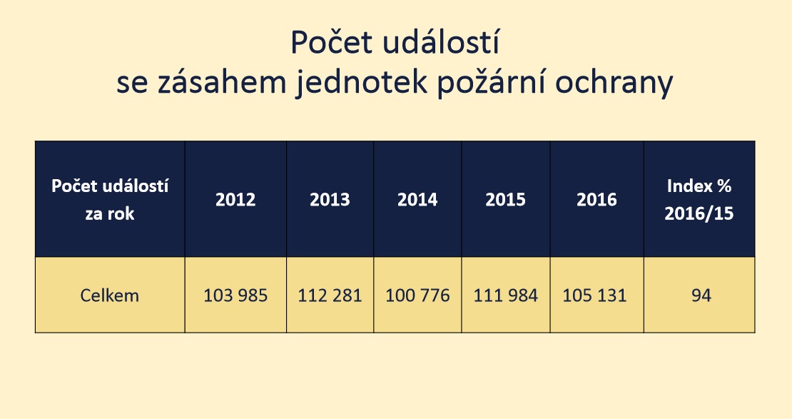 Prezentovány jsou předběžné statistické informace o událostech sezásahem jednotek požární ochrany a požárech vroce 2016. Konečné údaje budou publikovány ve Statistické ročence 2016, která bude kdispozici začátkem března 2017.Prevence a civilní nouzová připravenost - brig. gen. Ing. Miloš Svoboda