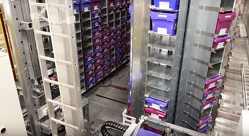 - rozsáhlé transportní koridory s válečkovými a pasovými dopravníky a dopravními cestami procházejícími skladovacími a výrobními úseky logistického centra;
