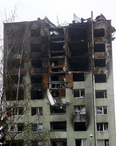 Velkou pozornost vzbudil např. výbuch a následný požár panelového domu v Prešově, viz následující obrázek č. 2.