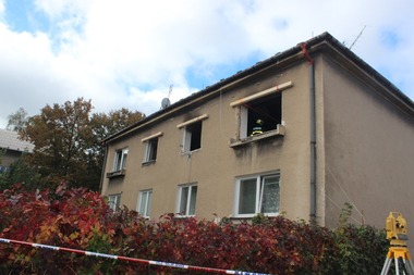 Fotografie č. 2 Pohled na odvrácenou stranu bytového domu během ohledávacích prací v rámci zajišťování objektu HZS ČR [8]