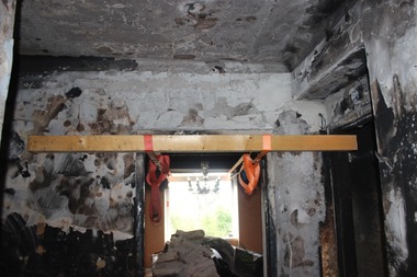 Fotografie č. 11 Pohled do interiéru bytového domu na ulici Jarošova v Havířově po stabilizaci a provizorním stažení upínacími kurty [8]