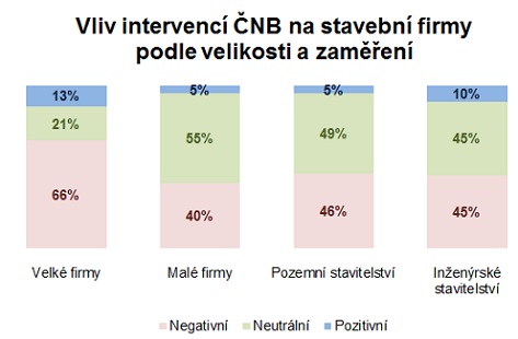 Jako pozitivní označilo vliv intervencí ČNB pouze 6 % stavebních firem. Vyplývá to ze specializované analýzy společnosti CEEC Research realizované na základě rozhovorů s více jak stovkou ředitelů stavebních společností.