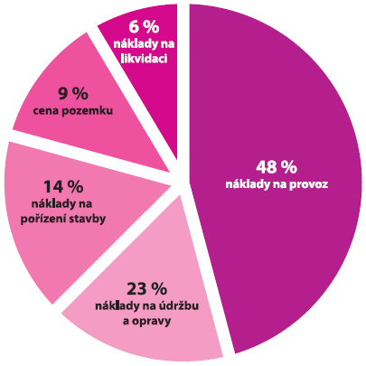 Vznik každého objektu je podmíněn vstupy, a to jak materiálovými, tak energetickými. V průběhu života stavby je spotřebovávaná energie a materiály potřebné na provoz a údržbu. V každém období životního cyklu je vynakládané nejenom velké množství energií, ale vzniká i nemalé množství odpadů a emisí. Všechny tyto skutečnosti, které ovlivňují dopad stavby na životní prostředí, se dají ovlivnit již před realizací stavby Z praxe je všeobecně známo, že volba levnějších řešení při stavbě a realizaci projektu v období užívání nezanedbatelně zvýší náklady v období užívání stavby. Z ekonomického hlediska je období užívání stavby tím nejnáročnějším a tvoří ¾ celkových nákladů v období životnosti stavby a z toho jedna třetina tvoří náklady na správu a údržbu (viz Obr. č. 3).